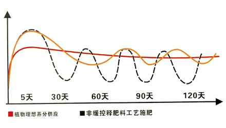 本產(chǎn)品供養(yǎng)均衡合理,速效部分采用普通復(fù)混肥和包衣緩釋氮素相組合,使用作物前期得到充分吸收,中后期緩釋成分能持續(xù)穩(wěn)定的釋放,其養(yǎng)分釋放速率受外界溫度及濕度影響,溫度及濕度越大釋放養(yǎng)分就越多,與植物在較高溫時(shí)生長(zhǎng)加快需要養(yǎng)分增加相吻合。外包衣可降解,可疏松土壤,增加透氣性,中后期抗旱,作物產(chǎn)量及品質(zhì)相應(yīng)得到提高。